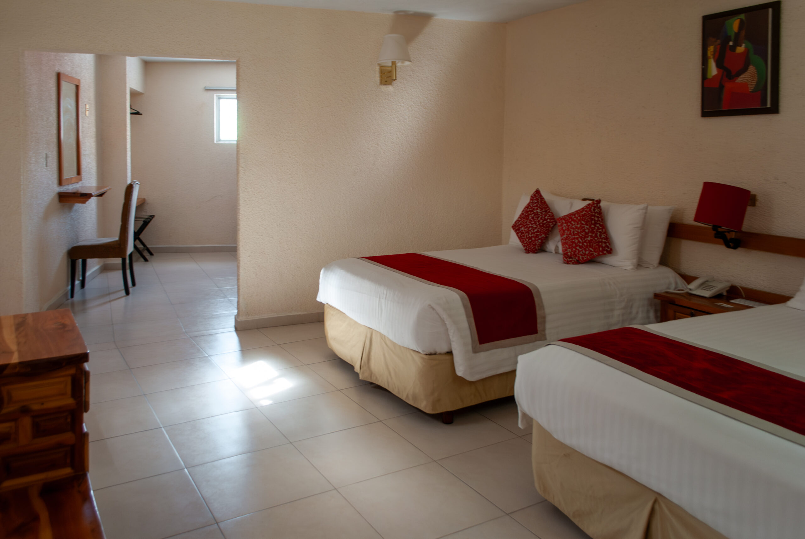 Ideal para familias o grupos pequeños que buscan comodidad en el corazón de Guanajuato. Esta habitación cuenta con dos camas matrimoniales que ofrecen el espacio perfecto para cuatro huéspedes. Con una vista espectacular de la cuidad de Guanajuato.