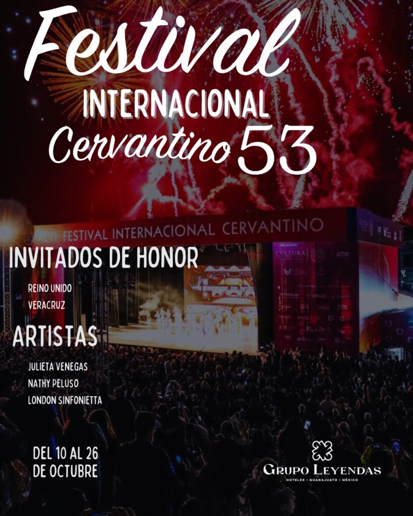 El Festival Internacional Cervantino (53ª edición) se llevará a cabo del 10 al 26 de octubre de 2025 en Guanajuato, y este año promete ser una de las más vibrantes y diversas: además de los grandes espectáculos en música, danza, teatro y ópera, habrá performance, exposiciones, cine y presentaciones callejeras que le dan alma al #Cervantino.